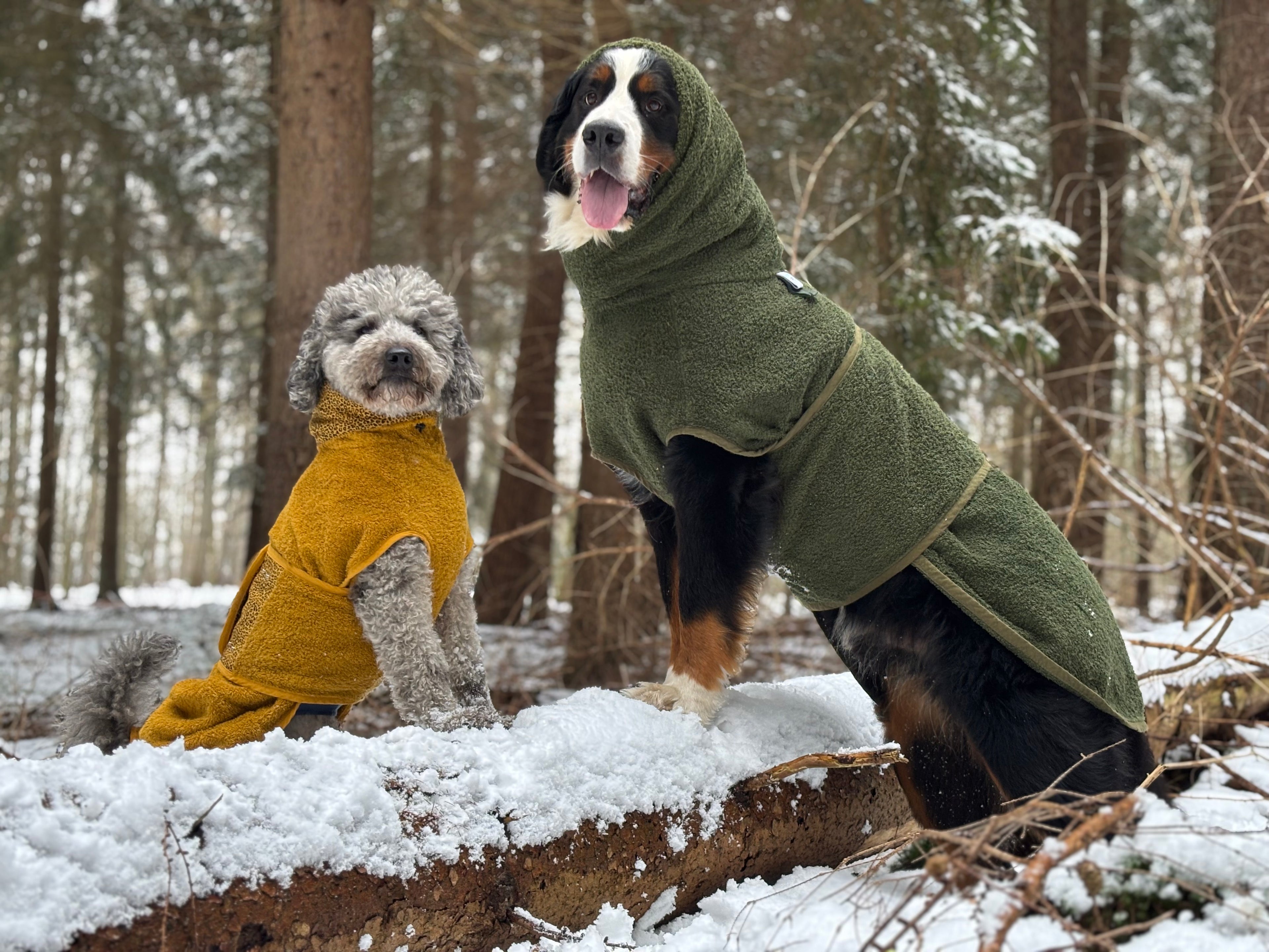 Een van onze populairste producten is de Natjas hondenbadjas. Deze is onmisbaar voor honden die graag zwemmen, door de regen wandelen of modderpoelen ontdekken. Perfect ook na een bad, douche of wasbeurt! Met een Natjas blijft jouw auto en huis schoon, droogt je hond sneller en koelt hij minder snel af. Onze badjassen zijn op maat gemaakt (van XXS tot XXL), gemaakt van 90% ademend en vachtvriendelijk katoen, super absorberend en vuilopnemend, en hebben een slim design met verstelbare sluiting en capuchon. Bovendien zijn ze duurzaam en gaan ze een hondenleven mee.